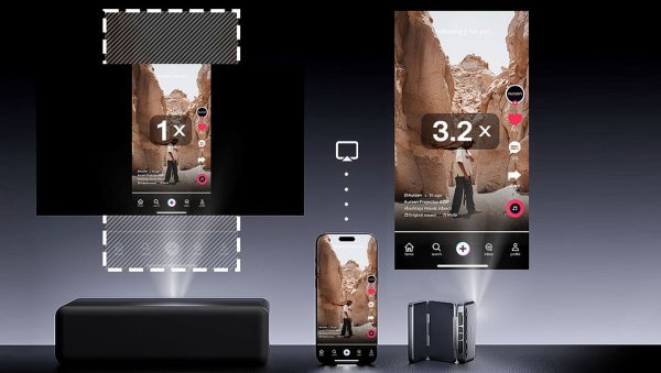 Aurzen zauważył też, że współczesną rozrywką wcale nie są tylko filmy. Krótkie formy - TikTok, reelsy, shorty to codzienność. Dlatego projektor można obrócić na bok, a obraz automatycznie ustawi się pionowo. Wyobrażaliście sobie oglądanie TikToków w „kinowym” rozmiarze?