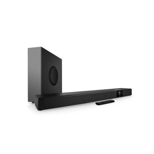 - Wydajny soundbar 5.1, zapewniający dynamiczny dźwięk podczas oglądania telewizji, grania i słuchania muzyki w pomieszczeniach do 35 m².